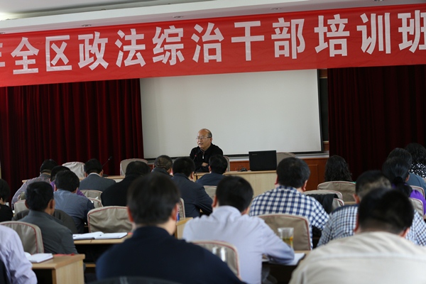 4月20日,济南市法学会常务副会长兼秘书长孙德龙为历城区政法综治干部培训班学员作法治报告