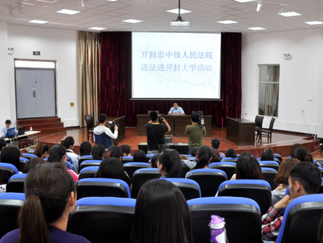 5月13日下午,由开封市法学会组织开封中院民三庭到开封大学开展“送法进校园”活动,开庭审理并当庭宣判一起劳动争议案件。做为六进活动的一种创新普法形式,增强了送法的针对性和互动性,受到听讲的200余名大学生的欢迎和好评。