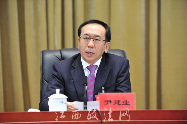 尹建业充分肯定了去年全省政法战线取得的成绩。他指出,今年全省政法工作要深入学习贯彻党的十八大、十八届三中、四中、五中、六中全会和习近平总书记系列重要讲话精神,全面落实中央和省委、省政府的决策部署,紧扣平安江西、法治江西、过硬队伍建设的新任务、新要求,深化司法体制改革,着力预测预警预防,突出现代科技应用,聚焦保安全、护稳定,破难题、补短板,抓法治、强队伍,进一步提升执法司法公信力和核心战斗力,进一步增强人民群众安全感和满意度,为建设富裕美丽幸福江西创造安全稳定的社会环境、公平正义的法治环境、优质高效的服务环境,以优异成绩迎接党的十九大胜利召开。