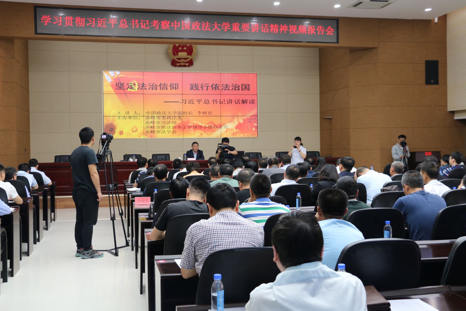 5月3日上午,习近平总书记来到中国政法大学考察并发表了重要讲话。这是党的十八以来,习近平总书记第五次就法治问题作重要讲话,也是第一次系统地阐述法治人才培养的重要作用和意义。5月27日上午市委政法委、市司法局、市依法治市领导小组办公室、市法学会在这里联合举办专题报告会,主要目的是全面深入学习宣传贯彻习近平总书记考察中国政法大学的重要精神,落实“七五普法”规划,深入推进依法治市进程,推进“百名法学家百场报告会”工作落实。同时也是对全市政法系统进一步牢固树立政治意识、大局意识、核心意识、看齐意识,自觉运用习近平总书记系列重要讲话精神武装头脑、指导实践的思想动员。我们邀请到了中国政法大学副校长李树忠同志作专题报告。