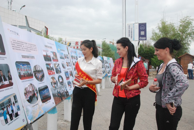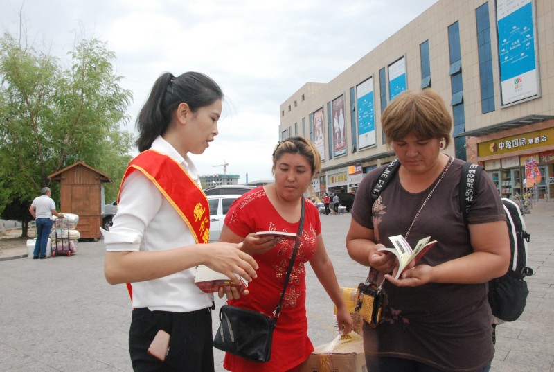 禁毒志愿者用哈萨克语向外籍游客讲解禁毒知识