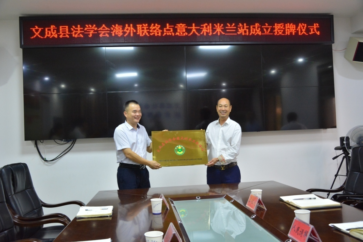 9月20日下午,“文成县法学会意大利米兰联络站”的授牌仪式在文成县举行