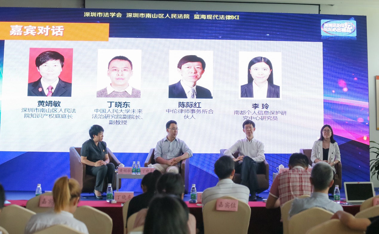 2018年8月26日上午, 中国人民大学未来法治研究院副院长、副教授丁晓东与中伦律师事务所合伙人陈际红做客第三十九期深圳法治论坛,为听众深度解析数据保护的立法解读与合规建议。本期论坛由深圳市法学会、深圳市南山区人民法院和蓝海现代法律服务发展中心(以下简称为“蓝海中心”)在深圳市南山区人民法院图书馆公众法律分馆共同主办,来自企业、律所、高校、研究机构等的100多位观众参加了本次活动,现场座无虚席。