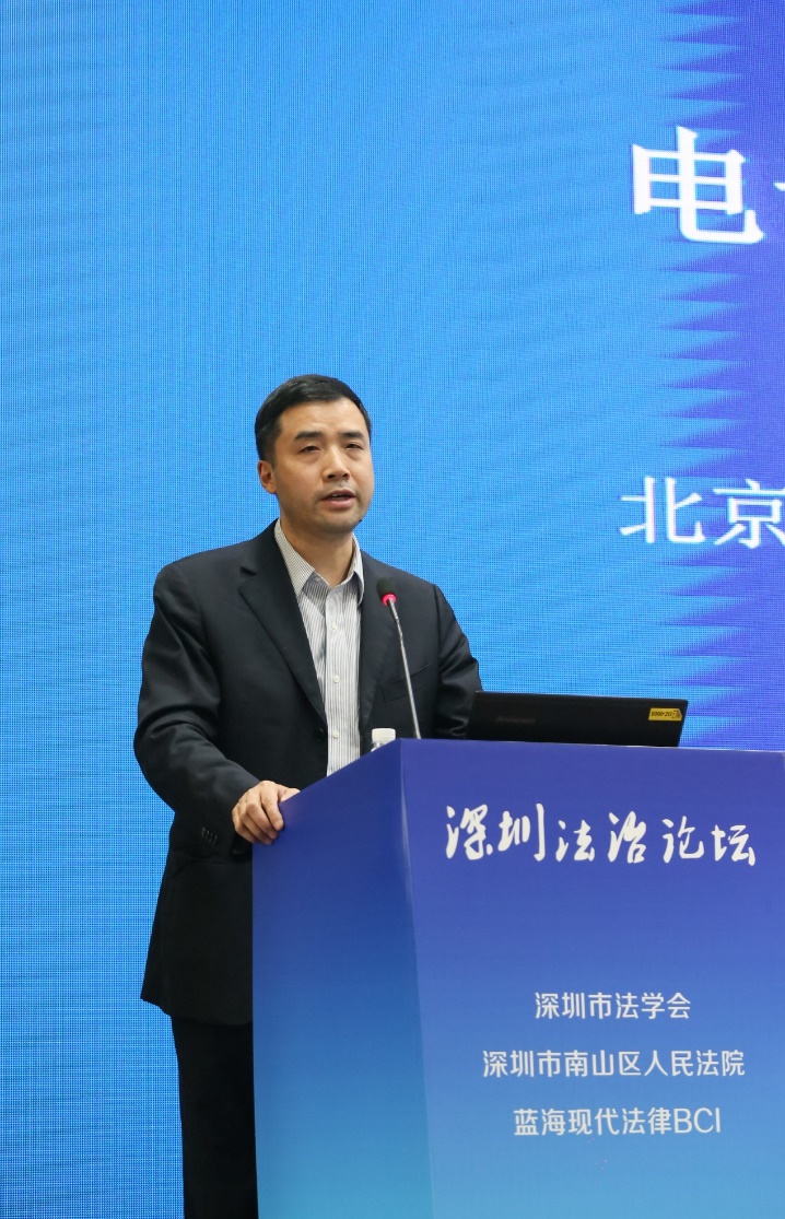 2018年10月10日下午,受主办方邀请,北京大学法学院教授、博士生导师、电子商务法立法起草工作组成员薛军做客第四十期深圳法治论坛,为观众深入解读《电子商务法》的重要制度。本期论坛由深圳市法学会、深圳市南山区人民法院和蓝海现代法律服务发展中心在深圳市南山区人民法院图书馆公众法律分馆共同主办。来自企业、律所、高校、研究机构等150多位观众参加了本次活动,现场座无虚席。