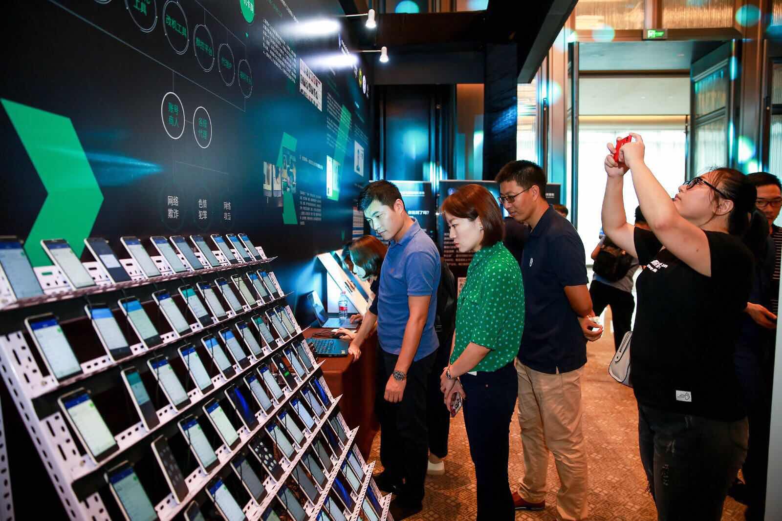 本次沙龙活动分为参观、领导致辞和学术研讨三部分,为了让参会嘉宾了解网络黑产的发展和危害,现场搭建“黑产实验室”,分为“体验区”与“揭秘区”。现场展示用于恶意注册虚假账号的黑产设备,通过恶意注册环节全链条的复现,为嘉宾提供了真实体验。