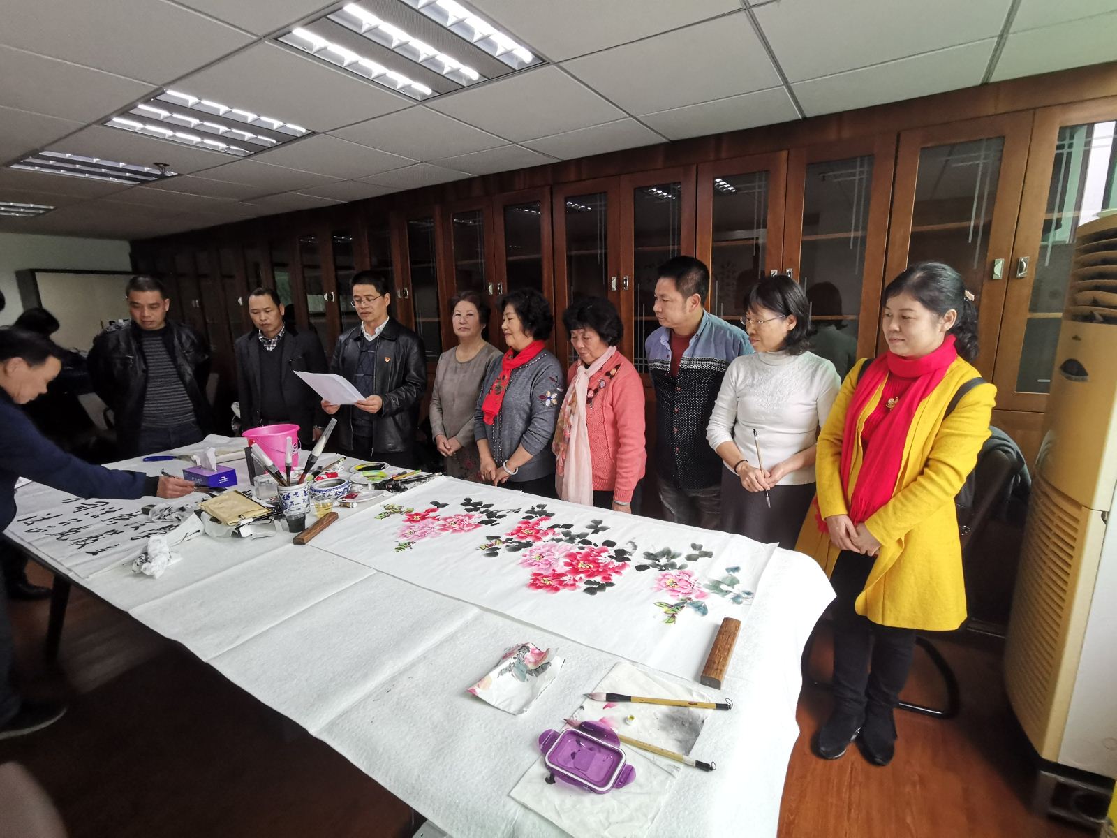 为深入学习贯彻习近平总书记关于全面依法治国的新理念新思想新战略,弘扬社会主义法治文化,1月15日下午,由清远市法学会发起成立的法治文化活动中心举行揭牌仪式,并成功举办首届法治文化创作活动,广东省清远市政协党组副书记、副主席、市法学会会长肖文,市委政法委专职副书记、市法学会常务副会长兼秘书长林为民共同为法治文化活动中心揭牌。清远市多名优秀书画家莅临活动中心,挥毫泼墨,现场创作。