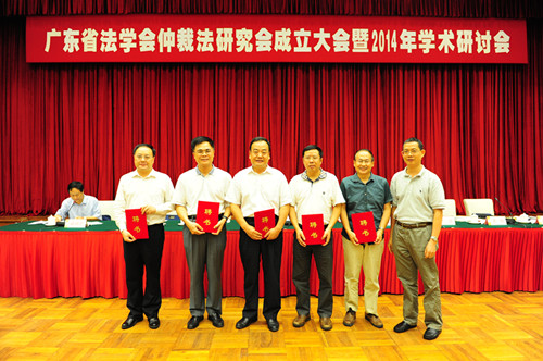 2014年9月10日,广东省法学会仲裁法研究会成立大会暨2014年学术研讨会在广州举行。会议选举产生了第一届理事会成员,并举行了首次学术研讨会。广东省法学会会长,省政协党组副书记、副主席梁伟发出席会议并作讲话。来自省内各有关高校、法律实务部门等单位80余名代表参加了会议。