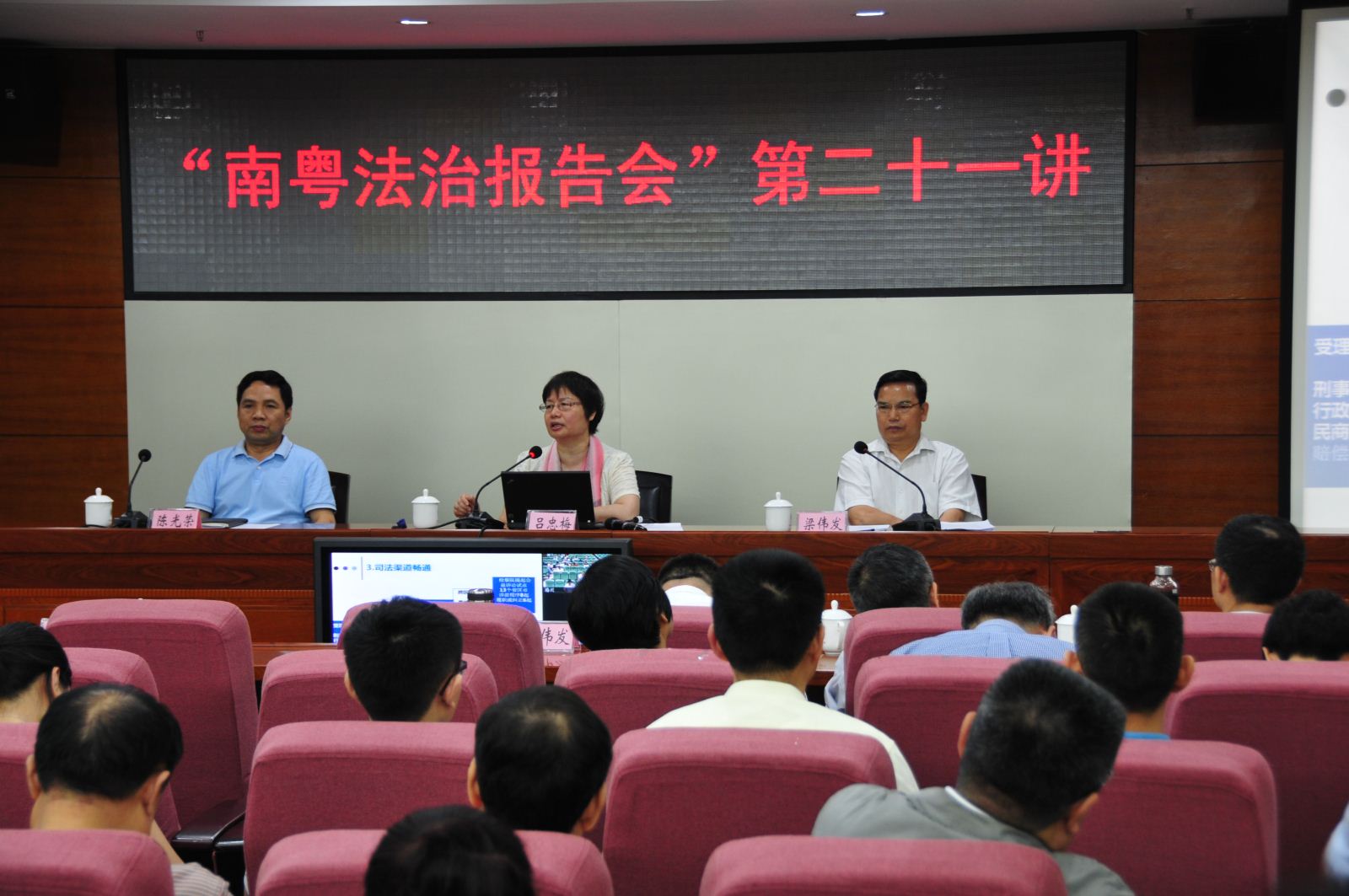 5月20日上午,“南粤法治报告会”第二十一讲在广东省环境保护厅举行