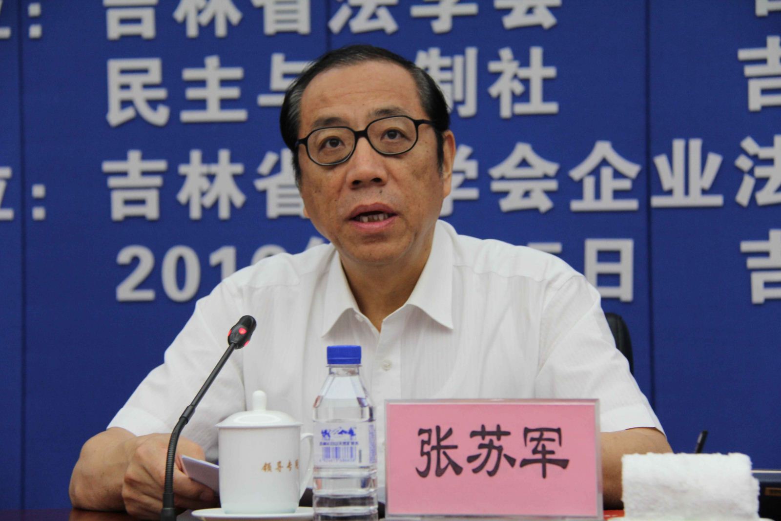 张苏军在讲话中首先代表中国法学会对研讨会表示热烈祝贺。指出,吉林举办研讨会,围绕学习贯彻习近平总书记系列重要讲话精神,围绕加快推进法治经济和法治社会建设,围绕构建合作融洽的政商关系等重要问题进行研讨,定位准确,主题鲜明,意义重大。