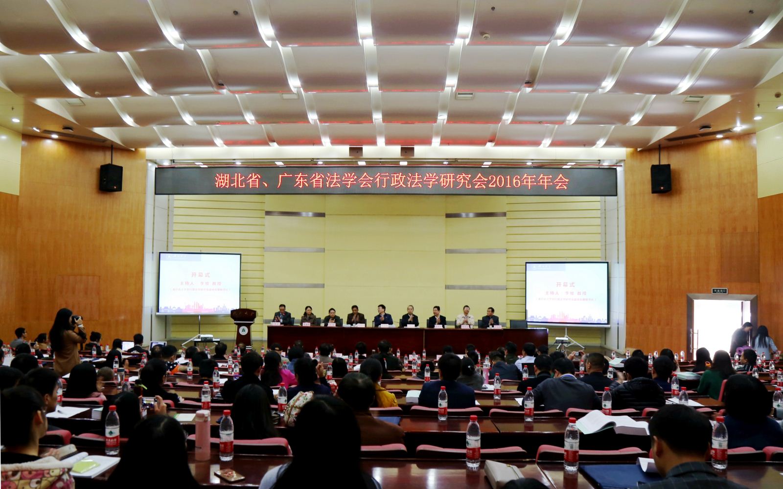 11月12日,湖北省、广东省法学会行政法学研究会2016年年会在湖北大学召开。湖北省法学会党组书记、常务副会长万学斌出席会议并讲话。湖北省政府法制办党组书记、主任张绍明,湖北大学党委常委、副校长钱建国,中国法学会行政法学研究会副会长、湖北省法学会行政法学研究会名誉会长方世荣,广东省法学会副秘书长薛晓光,湖北省法学会行政法学研究会会长曹海晶,广东省法学会行政法学研究会会长刘恒,湖北大学政法与公共管理学院党委书记郑全新等出席会议。来自湖北与广东地区理论与实务部门的专家学者200余人参加了会议。
