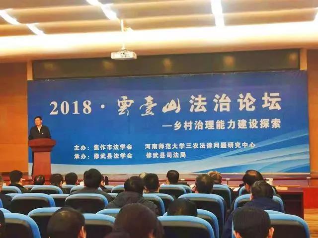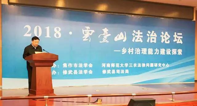 12月4日,以“乡村治理能力建设探索”为主题,由河南省焦作市法学会、河南师范大学三农法律问题研究中心主办,修武县法学会、修武县司法局承办的“2018·云台山法治论坛”在修武县举行。